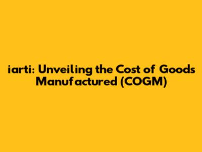 Iarti: Unveiling The Cost Of Goods Manufactured (COGM)
