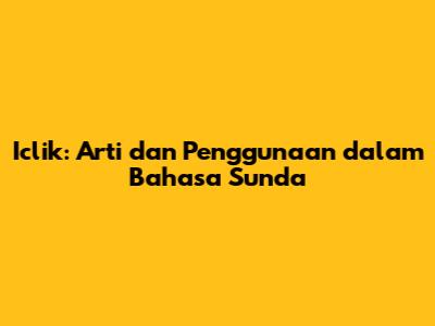 Iclik: Arti Dan Penggunaan Dalam Bahasa Sunda
