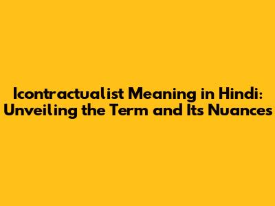 Icontractualist Meaning In Hindi: A Comprehensive Guide