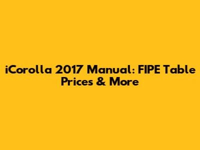 ICorolla 2017 Manual: FIPE Table Prices & More