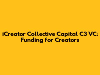 ICreator Collective Capital C3 VC: Funding For Creators