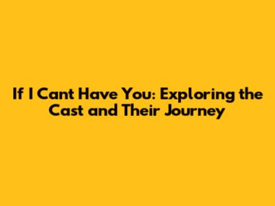 If I Can't Have You: Unveiling The Cast & Their Stories