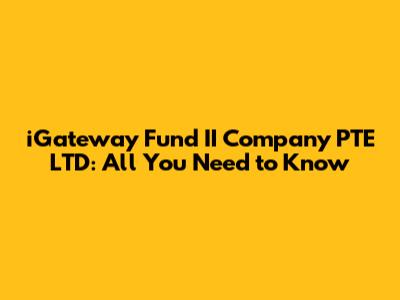 IGateway Fund II Company PTE LTD: All You Need To Know