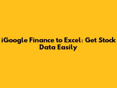 IGoogle Finance To Excel: Get Stock Data Easily