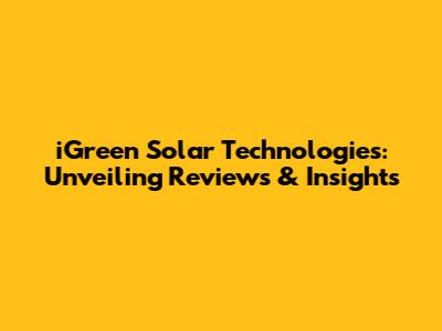 IGreen Solar Technologies: Unveiling Reviews & Insights