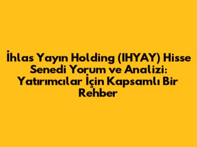 Hey yatırımcı dostlarım! Bugün, Türkiye'nin önde gelen medya ve yayıncılık şirketlerinden biri olan İhlas Yayın Holding (IHYAY) hisse senedi üzerine konuşacağız. İhlas Yayın Holding hisse yorum, ihlas yay305n hisse senedi analizi, ihlas yay305n hisse beklentileri gibi konulara detaylı bir bakış atacağız. Bu yazı, IHYAY hissesi hakkında merak ettiğiniz her şeyi kapsayan, güncel ve kapsamlı bir rehber olacak. Hadi başlayalım!