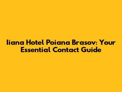 Iiana Hotel Poiana Brasov: Your Essential Contact Guide
