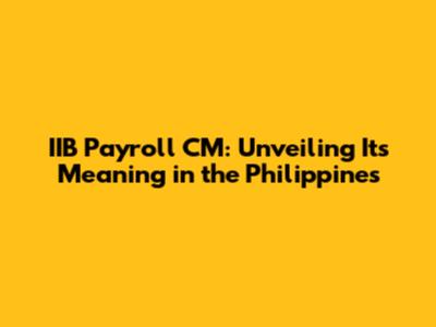 IIB Payroll CM: What It Means In The Philippines