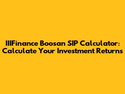 IIIFinance Boosan SIP: Calculate Your Investment Returns