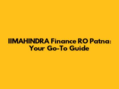 IIMAHINDRA Finance RO Patna: Your Go-To Guide