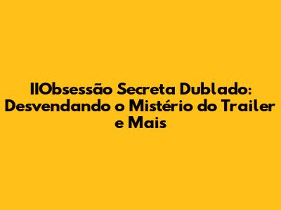 O Trailer Dublado de IIObsessão Secreta: O Que Esperar?