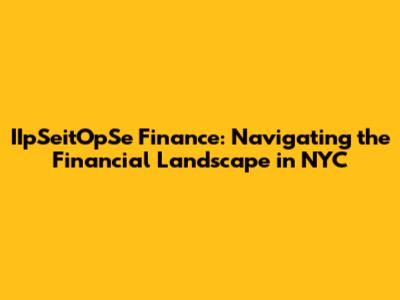IIpSeitOpSe Finance: Your NYC Financial Guide