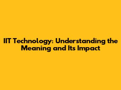 IIT Technology Explained: Meaning, Uses, And Impact