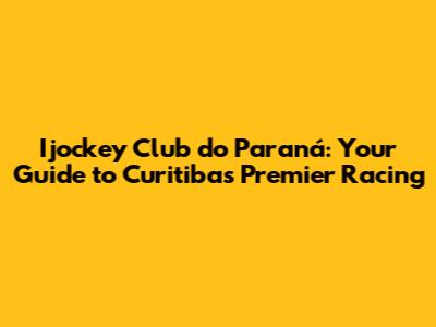 Ijockey Club Do Paraná: Your Guide To Curitiba's Premier Racing