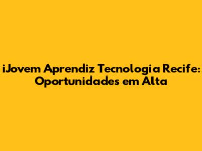 IJovem Aprendiz Tecnologia Recife: Oportunidades Em Alta