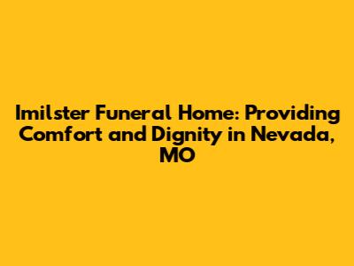 Hey there, folks! If you're here, chances are you're looking for information about Imilster Funeral Home in Nevada, Missouri. Dealing with the loss of a loved one is never easy, and finding the right support can make all the difference. That's where Imilster Funeral Home steps in, offering a range of services designed to provide comfort, guidance, and a dignified farewell. Let's dive in and explore what makes Imilster Funeral Home a cornerstone of the Nevada community during difficult times.