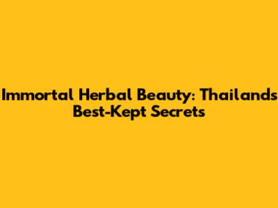 Immortal Herbal Beauty: Thailand's Best-Kept Secrets