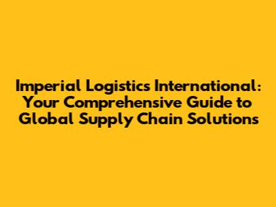 Imperial Logistics International: Your Comprehensive Guide