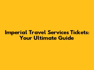 Imperial Travel Services Tickets: Your Ultimate Guide