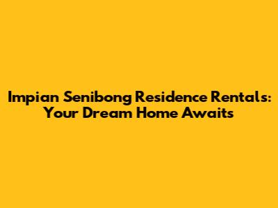 Hey there, property hunters! If you're on the lookout for a fantastic place to call home, you might want to check out Impian Senibong Residence for rent. This place is a gem, offering a blend of comfort, convenience, and a touch of luxury. Let's dive deep into what makes Impian Senibong Residence a top choice for renters and explore everything from the available units to the lifestyle you can expect. Get ready to find your dream home, guys!