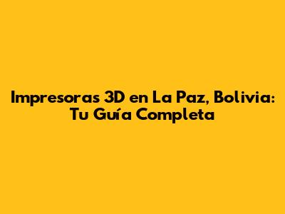Impresoras 3D En La Paz, Bolivia: Guía Completa Y Precios