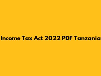 Income Tax Act 2022 Tanzania: PDF Download