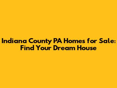 Indiana County PA Homes For Sale: Find Your Dream House