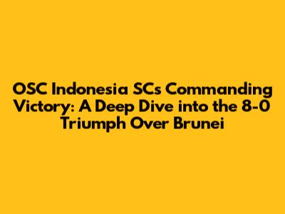 Hey sports fans! Get ready to dive deep into a match that's got everyone buzzing. We're talking about the epic showdown where OSC Indonesia SC absolutely demolished Brunei, finishing with a staggering 8-0 victory. Yeah, you read that right! Eight goals! This game was a masterclass in football, showcasing the Indonesian team's superior skills, teamwork, and sheer determination. Let's break down everything that went down, from the key moments to the players who made it all happen. We'll explore the strategies, the atmosphere, and the overall impact of this unforgettable game. Buckle up, because we're about to dissect this incredible performance, providing you with all the juicy details and insights you need to understand the magnitude of this win. This wasn't just a win; it was a statement. A bold declaration of OSC Indonesia SC's prowess on the field. The resounding victory has ignited excitement and anticipation for their future matches. The team's dominant display has not only boosted their standings but also captured the hearts of fans, setting a new benchmark for performance. Let's take a closer look at the key moments, player performances, and the broader implications of this stunning triumph. This game was a testament to the dedication, hard work, and relentless pursuit of excellence that defines OSC Indonesia SC.