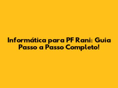 Informatica Para PF Rani: Guia Passo A Passo Completo!