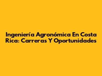 Ingeniería Agronómica En Costa Rica: Carreras Y Oportunidades