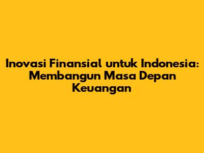 Inovasi Finansial Untuk Indonesia: Membangun Masa Depan Keuangan