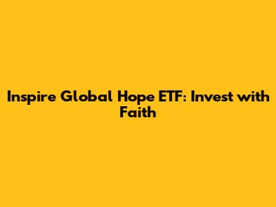 Hey guys, let's dive into the Inspire Global Hope ETF (NYSE Arca: PSL), an exchange-traded fund that's been making waves in the world of faith-based investing. If you're looking to align your investments with your values, this ETF might just be what you're looking for. The Inspire Global Hope ETF offers a unique approach to investing by focusing on international companies that not only demonstrate solid financial performance but also adhere to biblical values.