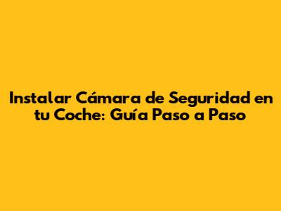 Instalar Cámara De Seguridad En Tu Coche: Guía Paso A Paso