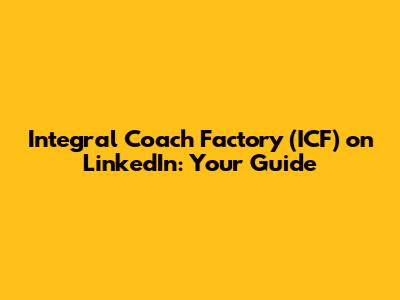 Integral Coach Factory (ICF) On LinkedIn: Your Guide
