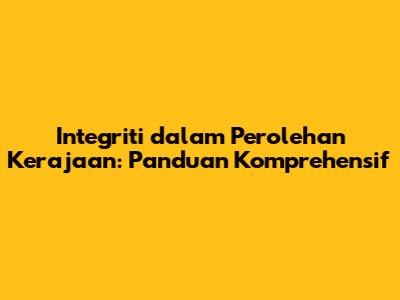 Integriti Dalam Perolehan Kerajaan: Panduan Komprehensif