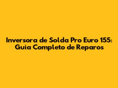 Inversora De Solda Pro Euro 155: Guia Completo De Reparos