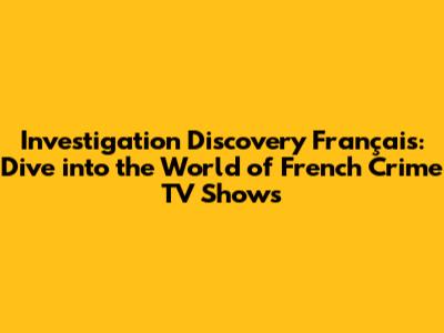 • French Crime Dramas: For those who prefer a more dramatized take on crime stories, Investigation Discovery Français offers a selection of French crime dramas. These shows often explore fictionalized versions of real-life events, adding an extra layer of suspense and intrigue.