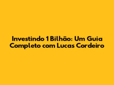 Investindo 1 Bilhão: Guia Completo Com Lucas Cordeiro