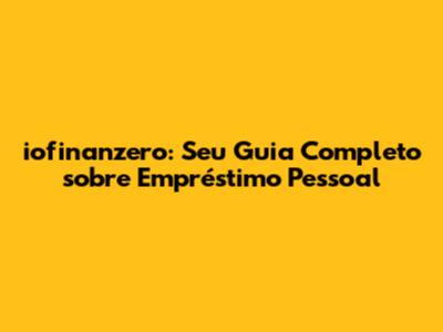 Iofinanzero: Seu Guia Completo Sobre Empréstimo Pessoal