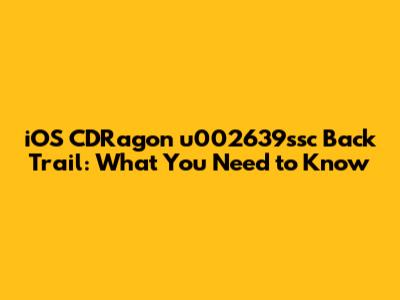 IOS CDRagon U002639ssc Back Trail: What You Need To Know