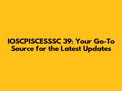 IOSCPISCESSSC 39: Latest News And Updates