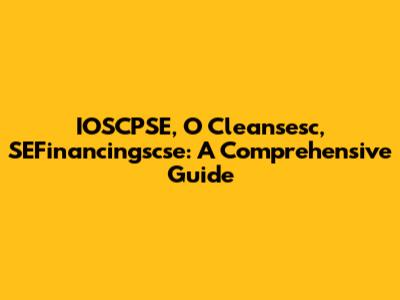 IOSCPSE, O Cleansesc, SEFinancingscse: A Comprehensive Guide