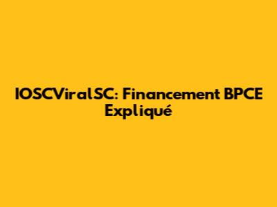 Comprendre IOSCViralSC et le Financement BPCE