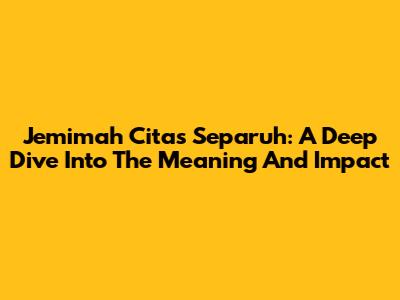 Jemimah Cita's 'Separuh': A Deep Dive Into The Meaning And Impact