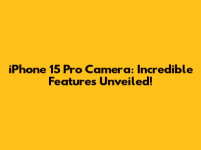 IPhone 15 Pro Camera: Incredible Features Unveiled!