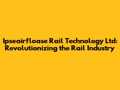 Hey guys! Ever heard of Ipseairfloase Rail Technology Ltd? If not, you're in for a treat. This company is seriously shaking things up in the rail industry with their innovative solutions and cutting-edge technology. Let's dive into what makes Ipseairfloase Rail Technology Ltd a game-changer and why you should definitely keep an eye on them. We will explore their background, core offerings, innovations, and impact on the rail sector. Understanding these aspects provides a comprehensive view of the company's role and significance in advancing rail technology.