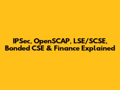 IPSec, OpenSCAP, LSE/SCSE, Bonded CSE & Finance Explained