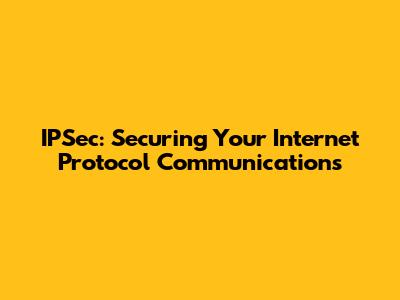 IPSec: Securing Your Internet Protocol Communications