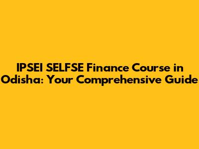 IPSEI SELFSE Finance Course In Odisha: Your Comprehensive Guide