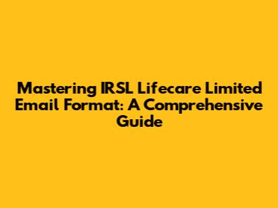 Hey everyone! Today, we're diving deep into something super practical that can make your professional life a whole lot smoother: the IRSL Lifecare Limited email format. Whether you're a new employee, a seasoned pro, or someone looking to connect with the company, understanding their standard email structure is key. It’s not just about sending an email; it’s about making sure your message gets across clearly, professionally, and efficiently. We'll break down the essential components, offer examples, and give you some pro tips to ensure your emails hit the mark every single time. Getting this right can seriously boost your credibility and ensure your communications are always on point.